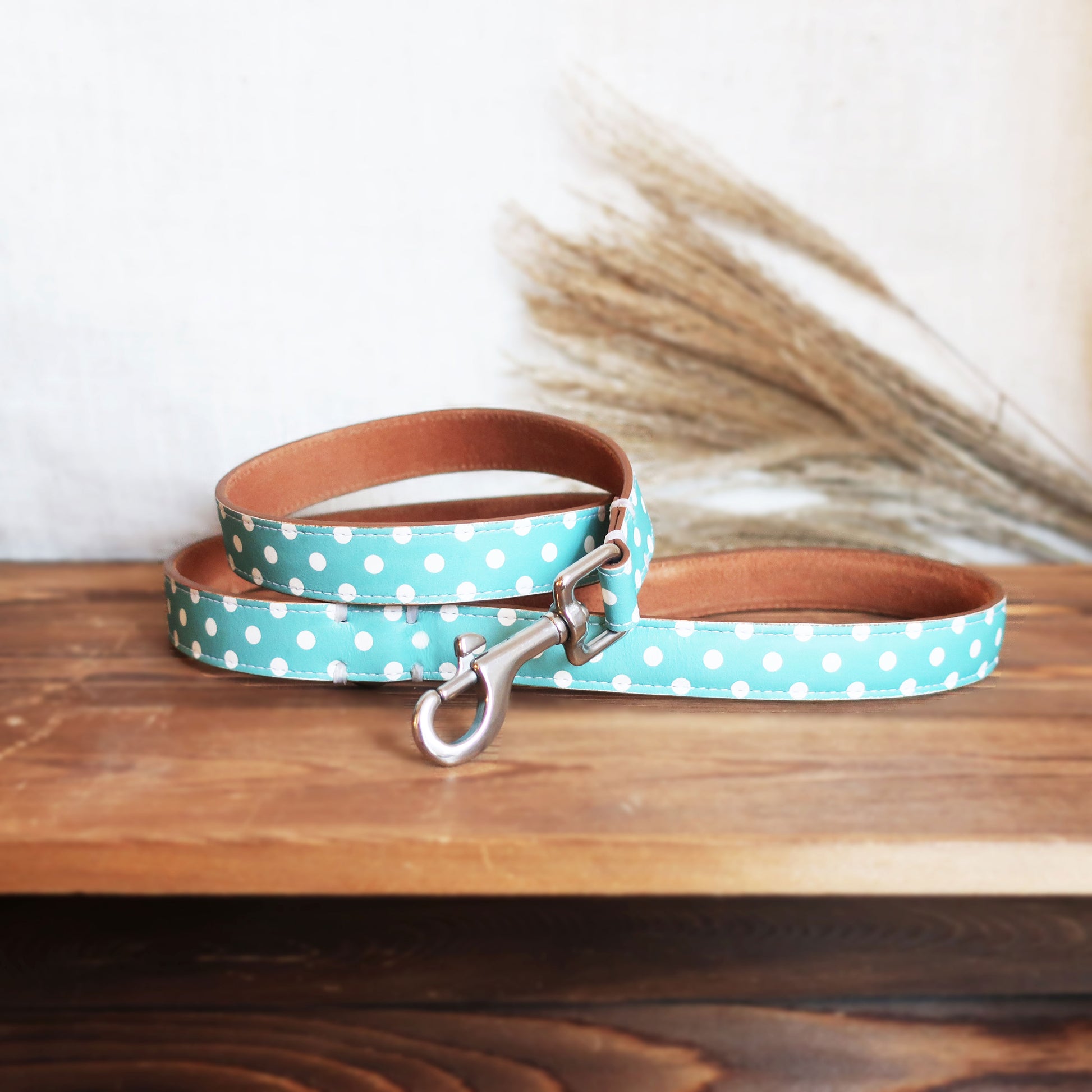 We love this full leather blue dog lead for brightening up walks with your dogs! This fun yet beautiful dog leash, paired with classic chrome hardware, looks great on your dog all year round.