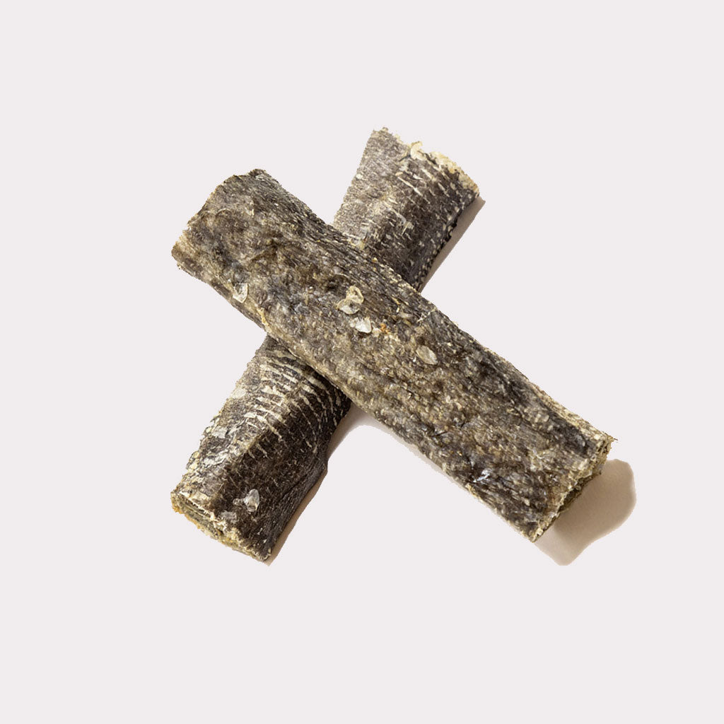 Our Fish Skin Rolls offer your dog a delicious and nourishing treat experience. Naturally rich in Omega-3 and protein, these treats help support a shiny coat, promote brain function, and contribute to a healthy immune system. They also aid in muscle growth, repair, and sustained energy.