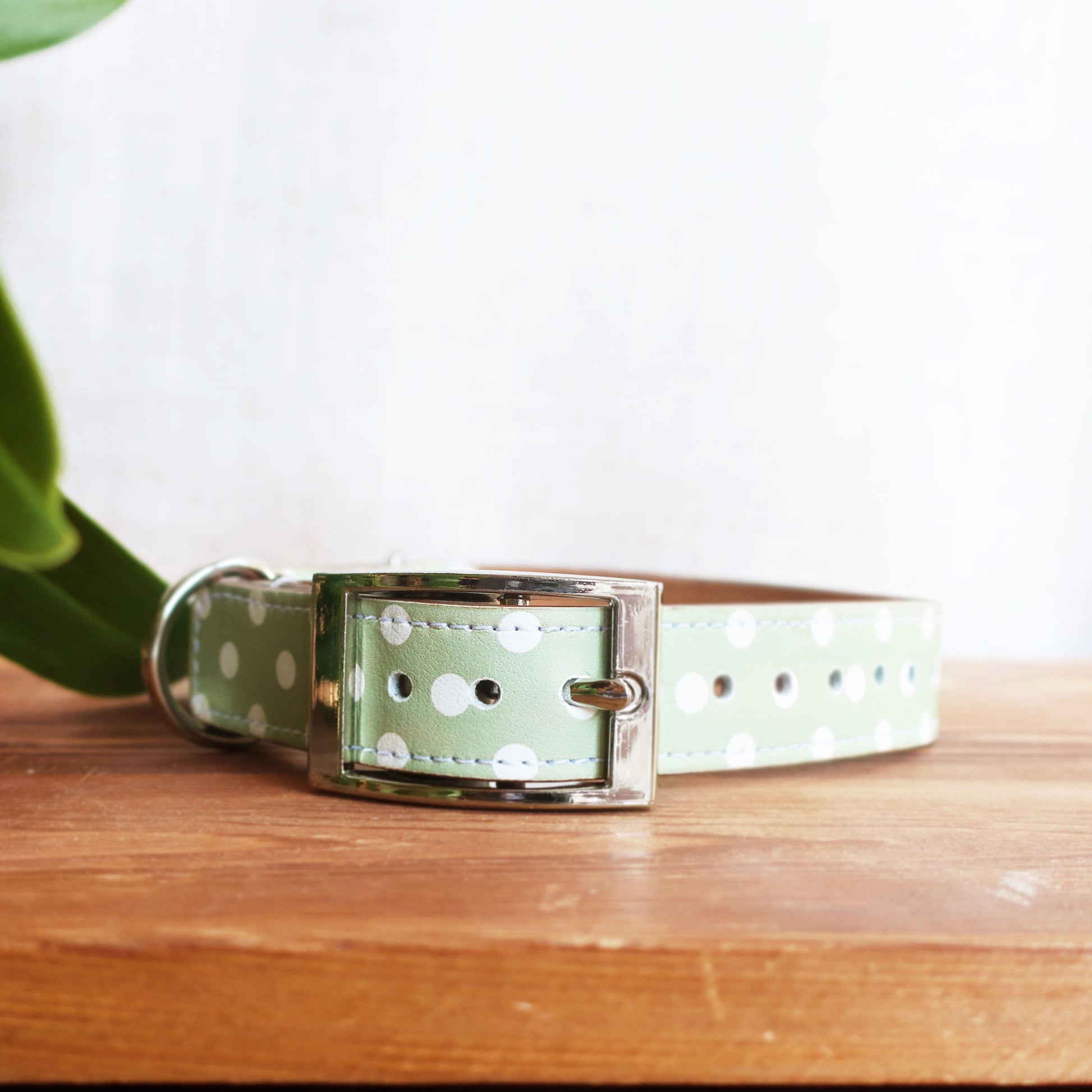 We love this full leather collar for brightening up walks with lovely dogs! This fun yet beautiful dog collar, paired with classic chrome hardware, looks great on any dog all year round.