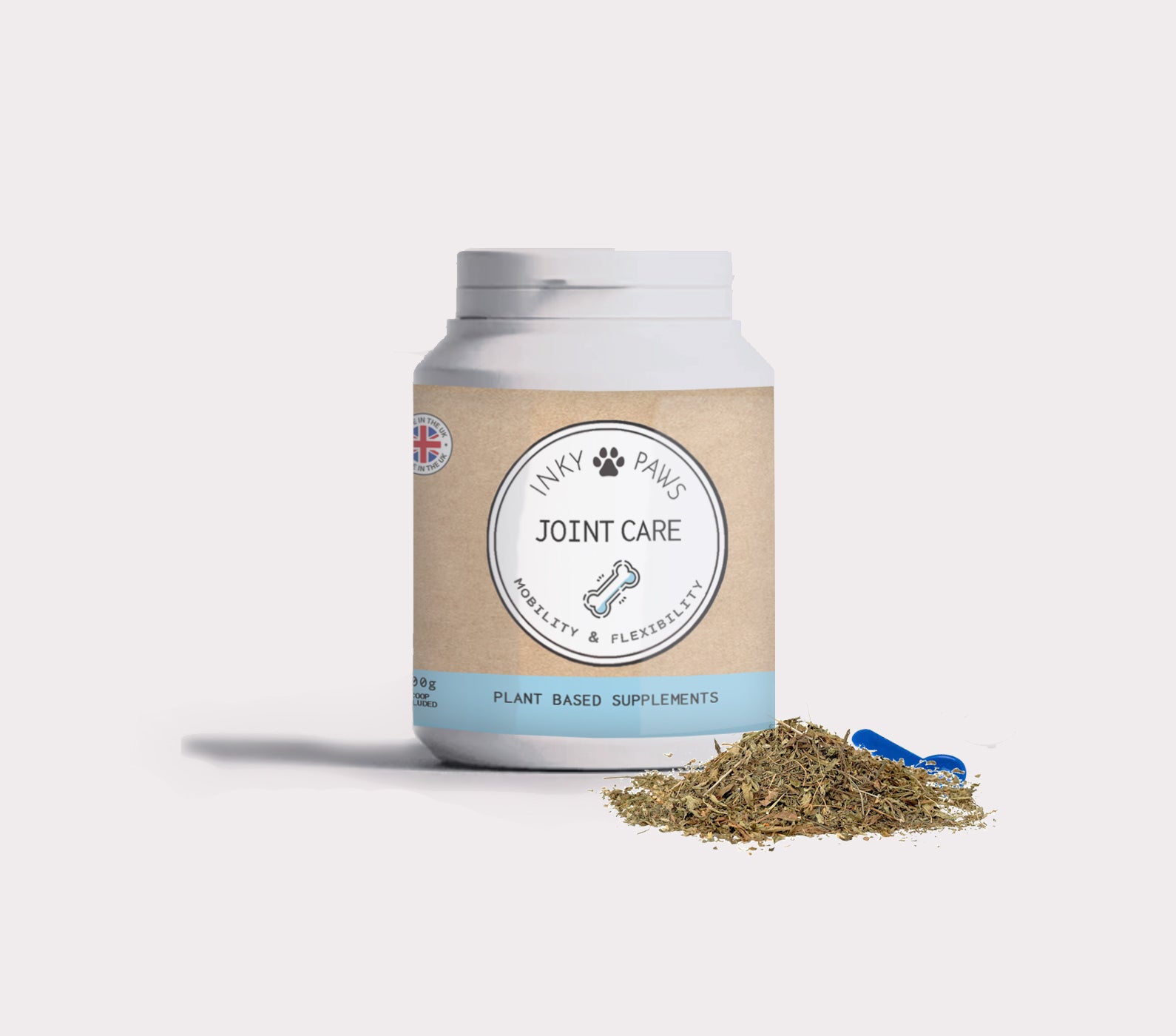 Our Joint Care Supplement is specially crafted to support your dog’s joint health and mobility with a blend of natural, effective ingredients. A combination of meadowsweet, grapple plant root, and boswellia which offer soothing properties to reduce inflammation, and yarrow promotes overall well-being. Turmeric and ginger root deliver antioxidant and anti-inflammatory benefits, providing extra support for stiff or aging joints. The addition of glucosamine to maintain cartilage and joint function, and MSM for healthy connective tissues, this blend is designed to keep your dog active and comfortable.